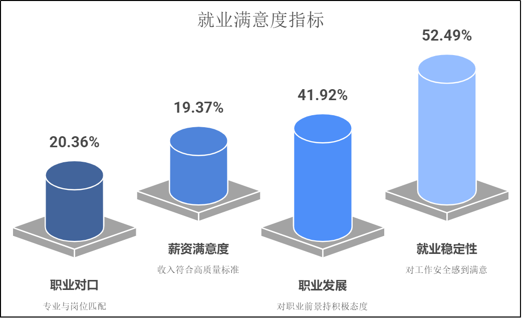 圖1:高質(zhì)量就業(yè)滿意度(數(shù)據(jù)來源:對近兩年就業(yè)的1002名學生調(diào)研)