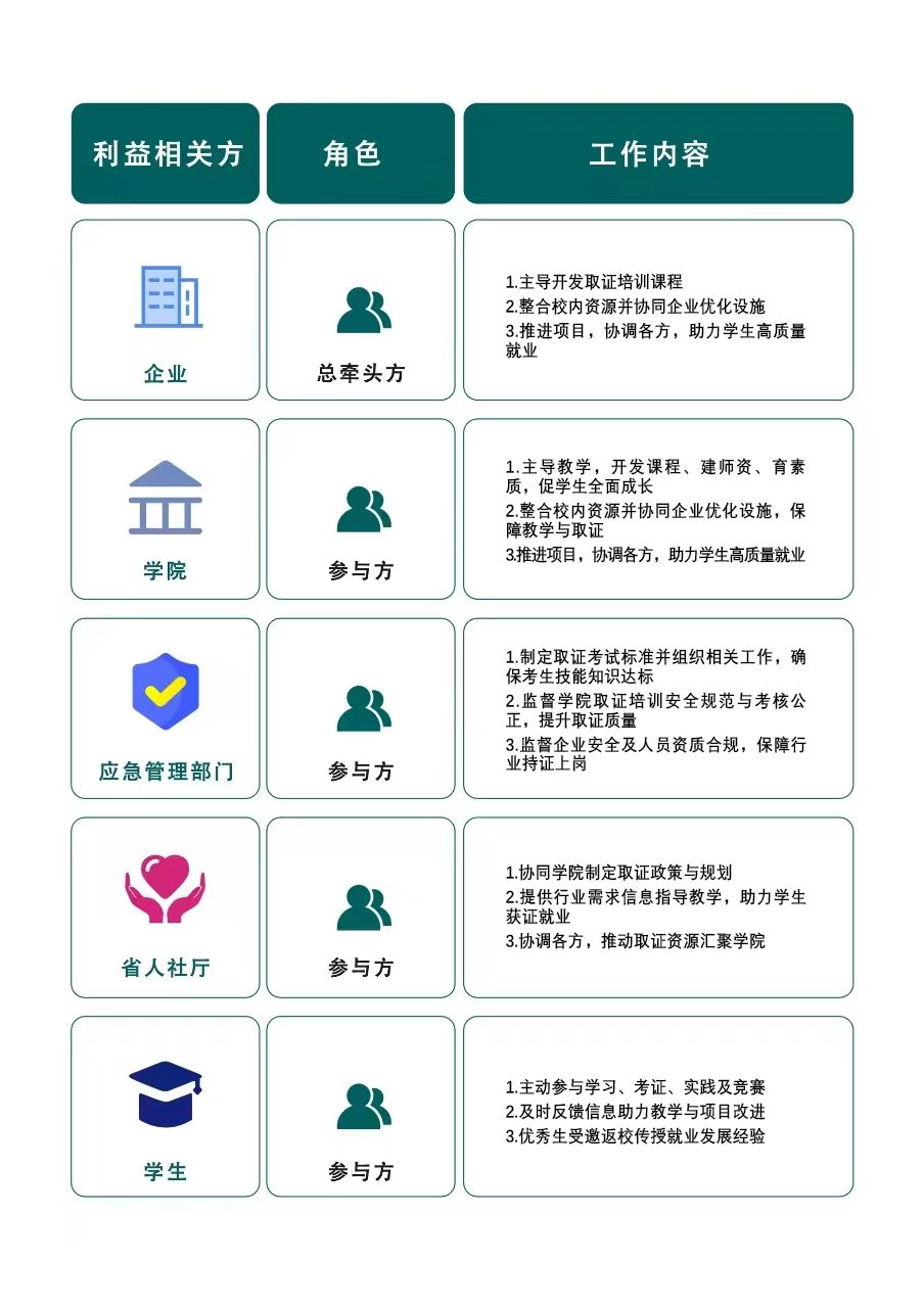 精準識別企業(yè)、應(yīng)急管理部門、省人社廳、學院、學生等利益相關(guān)方。通過深度調(diào)研(問卷+座談)梳理各方利益訴求,堅持“專業(yè)主導(dǎo)、協(xié)同聯(lián)動”原則,厘清利益相關(guān)方責任邊界,建立“需求對接-資源整合-方案共商”的協(xié)作模式,形成多方聯(lián)動就業(yè)質(zhì)量提升方案。