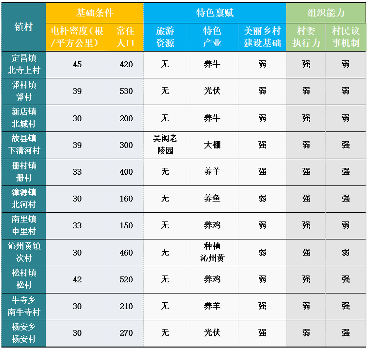 2.確定實施試點。按照“代表性、可復(fù)制性、示范性”原則,制定三方七項試點篩選標(biāo)準(zhǔn)(如表2),項目領(lǐng)導(dǎo)小組綜合考慮基礎(chǔ)條件、特色稟賦、組織能力等各方因素,選取故縣鎮(zhèn)供電所轄區(qū)下清河村為項目首個試點村(如圖3)。