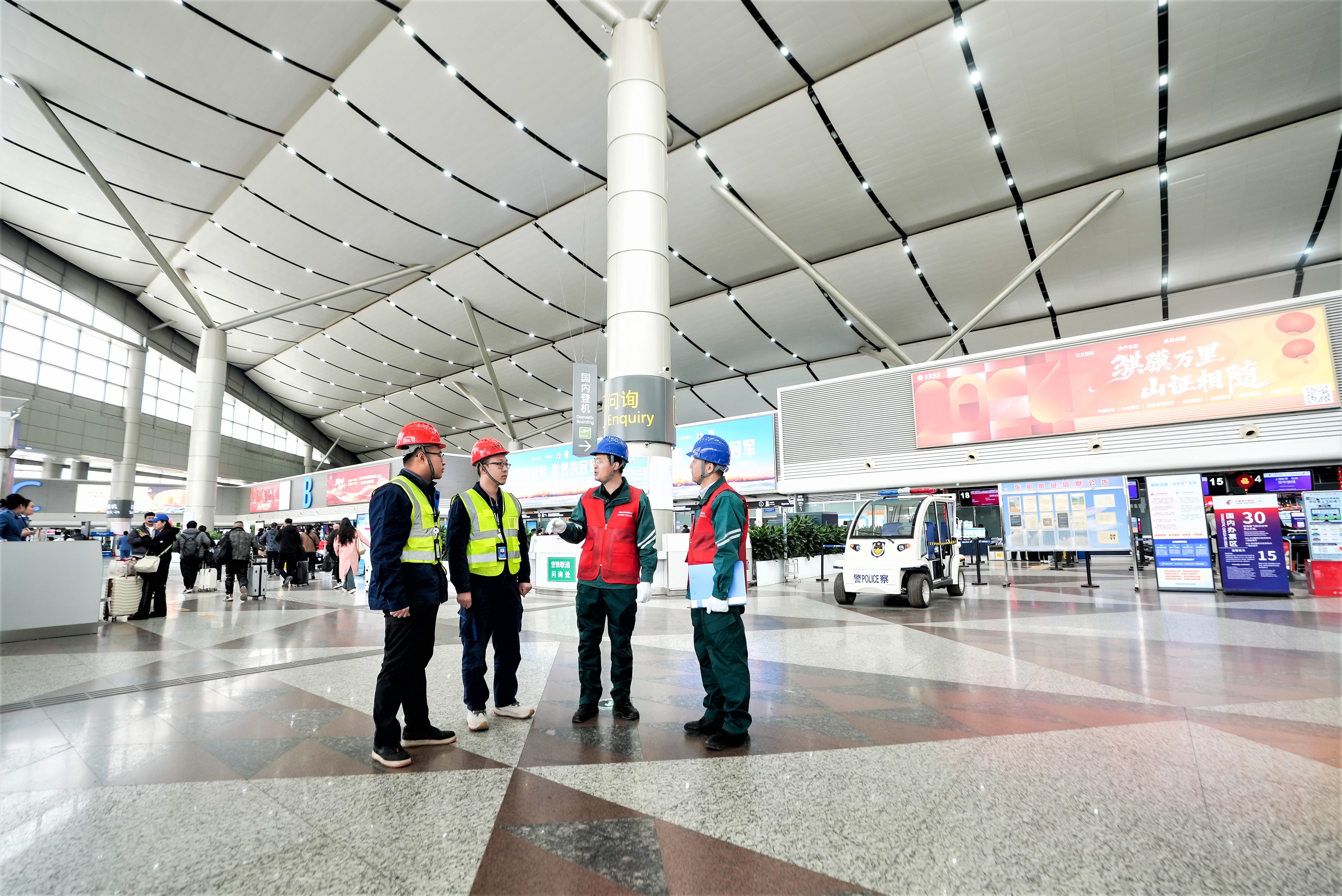 春節(jié)前夕,國網(wǎng)太原供電公司工作人員到太原武宿國際機場走訪,協(xié)助機場工作人員檢查供電設備,為春運客流高峰期提供充足電力保障。